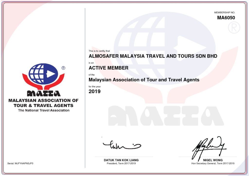 شركة المسافر ماليزيا حاصلة على عضوية في اتحاد شركات السياحة الماليزيه المرخصه ويمكنكم التاكد من ذلك من خلال الرابط ادناه :